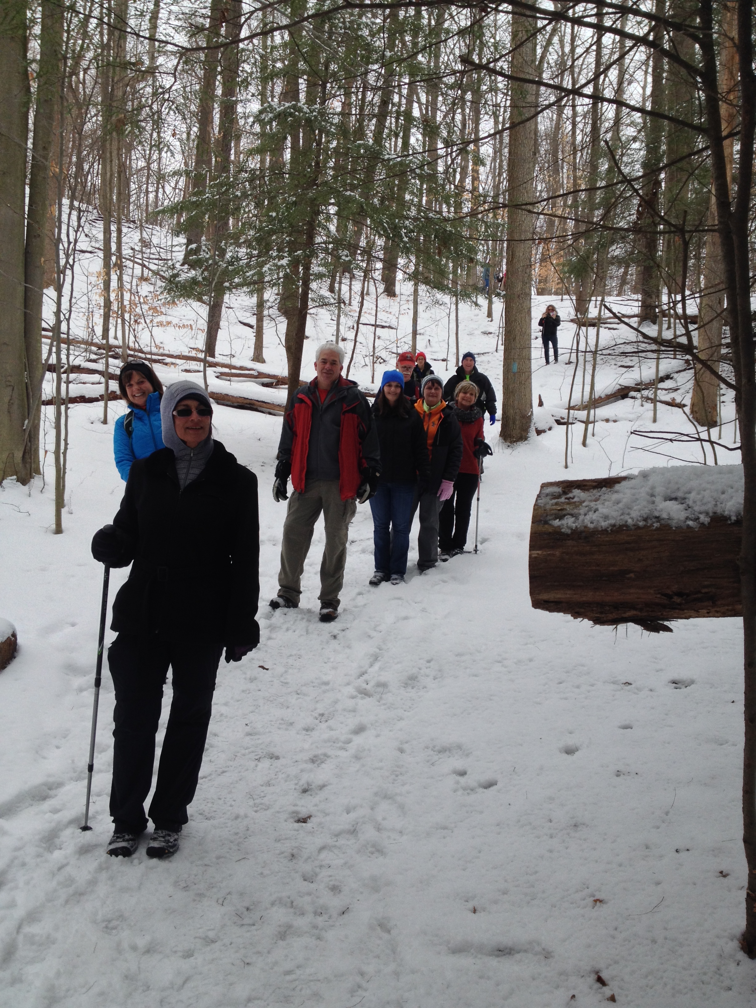 That was such a fun day!  The Jaite to Boston trail is one I originally did with my cousin Anna.  It is 5.6 miles one way (we only did part of it in the above pic.)  It is a great trail to hike in the winter because not only does it work your big muscle groups in your legs but it is a great hip strengthening trail because of the balance you have to maintain while trekking up and down in the snow!  I loved it and I know others did too 🙂