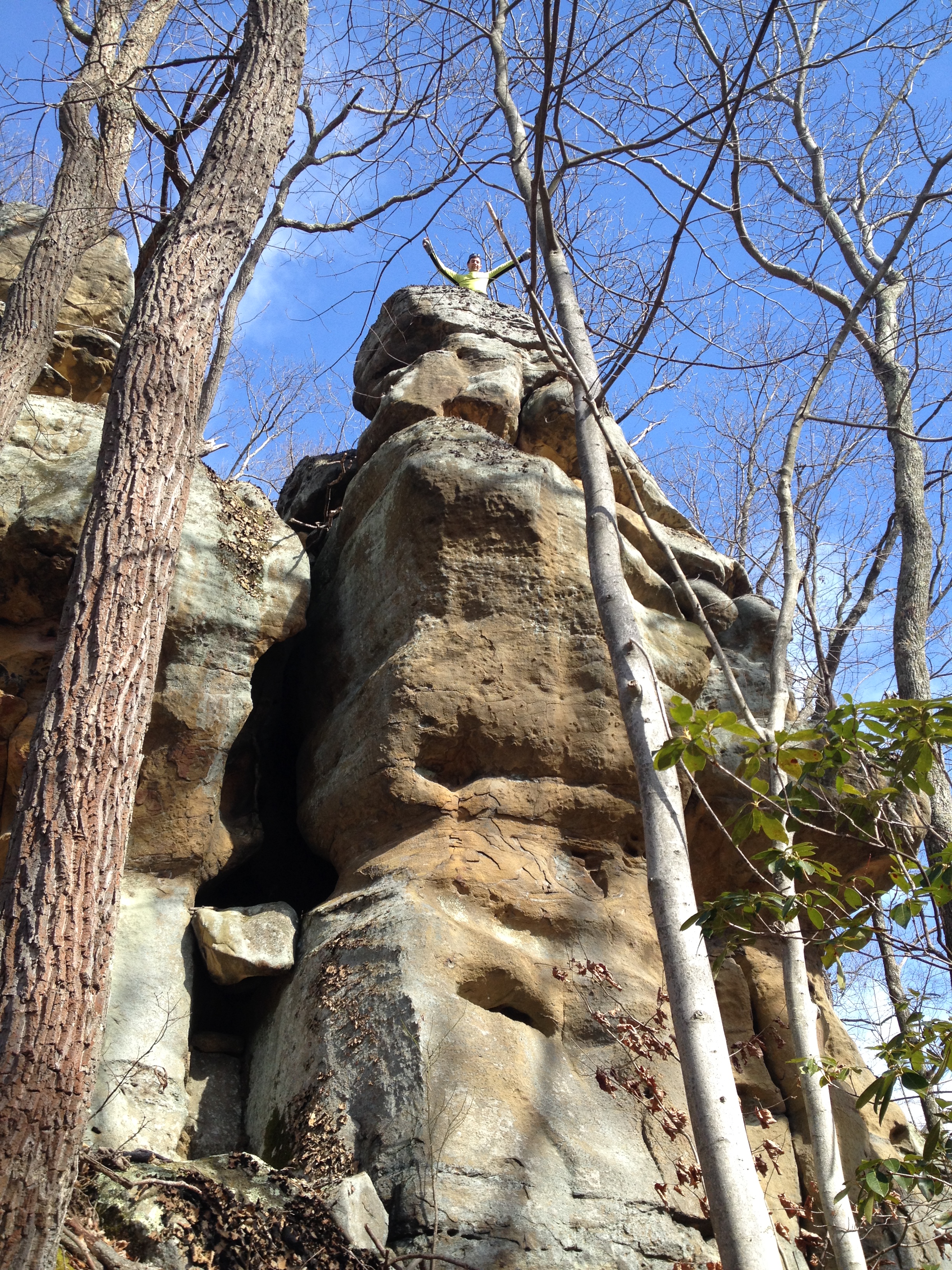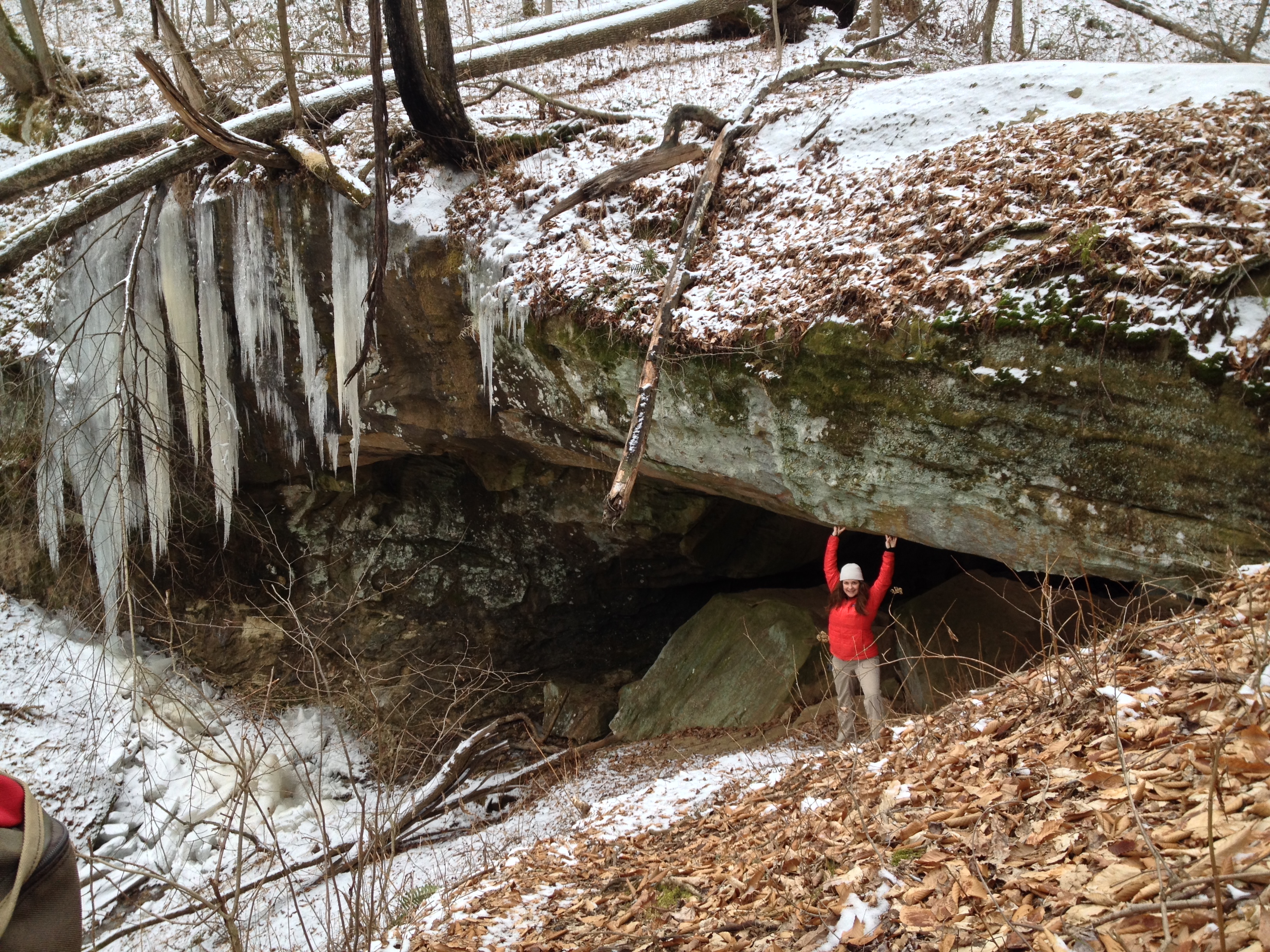 Back in February I led a small trip to Archer’s Fork Loop down in Wayne National Forest.  I first found out about this trail in an issue of Backpacker’s Magazine.  I was so stoked to see a local trail that was is only about 3 hours away featured in a national magazine!  Whoo Hoooo for Backpacker’s Magazine!  This trail was very cool because it feature a natural rock bridge and a really cool cave.  Now being someone who has explored our national parks well and has lived in California, I have to say that when I find these gems that are all over the Yosemite, Yellowstone etc, it is very nice to find them in your own backyard!  Beauty is everywhere,  big or small it all has an impact on our senses and psyche.  Breathe it all in.  Let it go.  But keep a small breath in your lungs and carry it with you always.  I was born in Montana and my family moved back to Ohio when I was only a few months old.  But I swear I breathed in the air of  Big Sky country and it has never left me.  My folks took us everywhere.  Camping and traveling to parks.  I am so incredibly thankful for that, for it instilled in me my sense of wonder/wander (lol…) and what really stuck with me is my parents saying, “Why not take you kids everywhere?  Kids are portable!”  My dad did the driving and navigating and my mom…. holy moly…she organized EVERYTHING and thought of EVERYTHING for her four children!  She was like a Native American woman who could set up and pack up  her Tipi (or teepee) in record time all the while being SUPER organized.  I hope to be that organized and resourceful one day! Â
