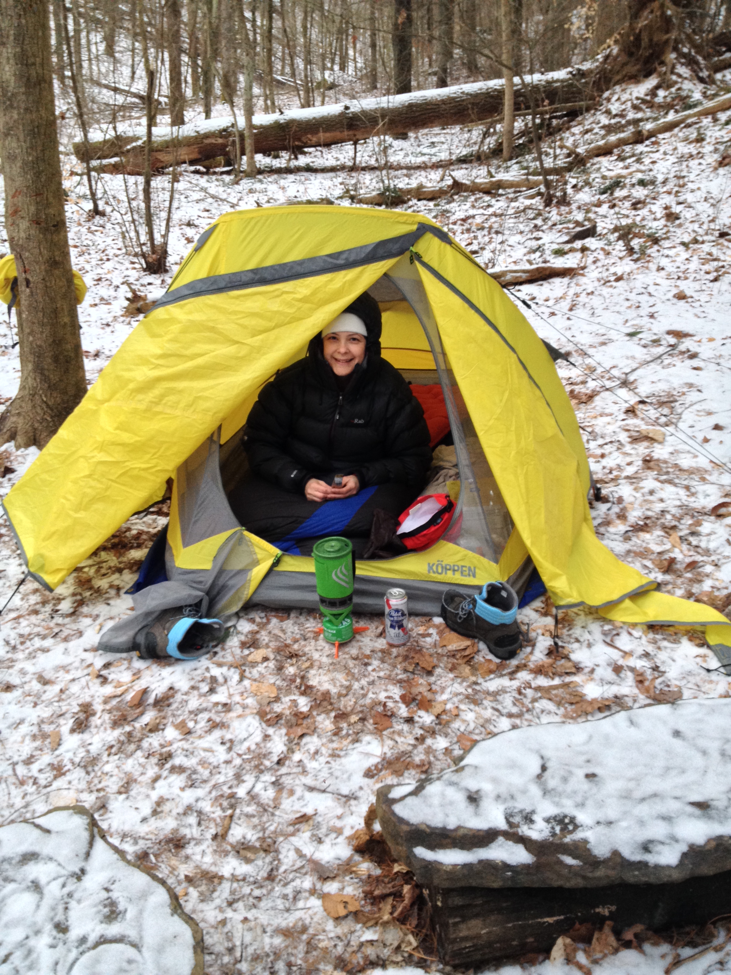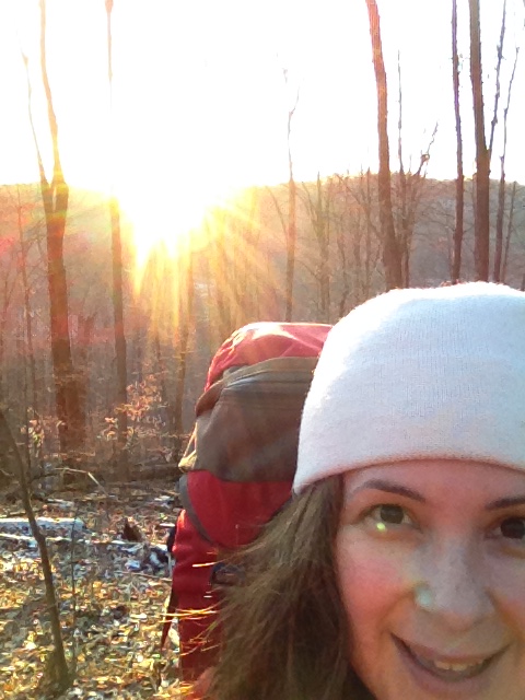 Archer’s Fork Loop Trail, Wayne National Forest 😀 The weather started out cold, then became much colder and then warmed up to almost 45 degrees by the end of the trip!  It was so much fun!  The trail is in the middle of what we believe is fracking country.  It was a really beautiful trail but I could have done without the gas lines that we would sometimes trip over.  We set up camp next to a small brook and it was the perfect place to meditate and do yoga in the morning.  What was funny was the guys were having a debate about some very close sounds that surrounded our camp that night.  Mihai believed them to be coyotes and in his true Romanian fashion set off to scare them off by hooting, hollering and running wildly up the hill!  Hahahaha!!!! Wish I had it on video!  Anthony on the other hand believed them to be owls and was a very perplexed as to WHY Mihai would want to scare off owls!  So for the remainder of the trip almost everything was a reference to coyotes and owls!  Â